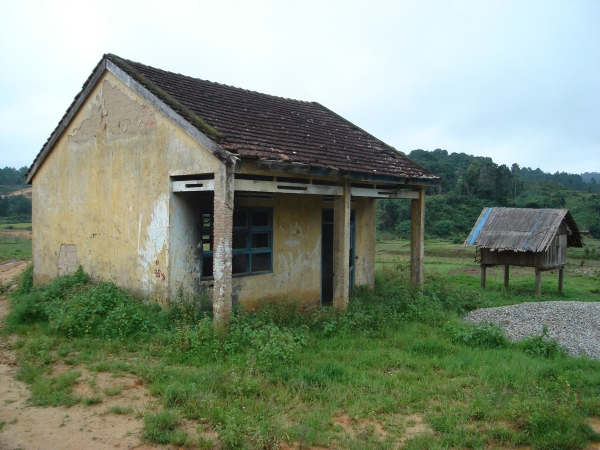 | Masonry house (may be deserted?) in a village. A bit further, a granary on concrete stilts |