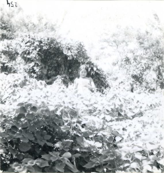 | Woman in a ramie field (shot from a location below her - overexposed printing) |